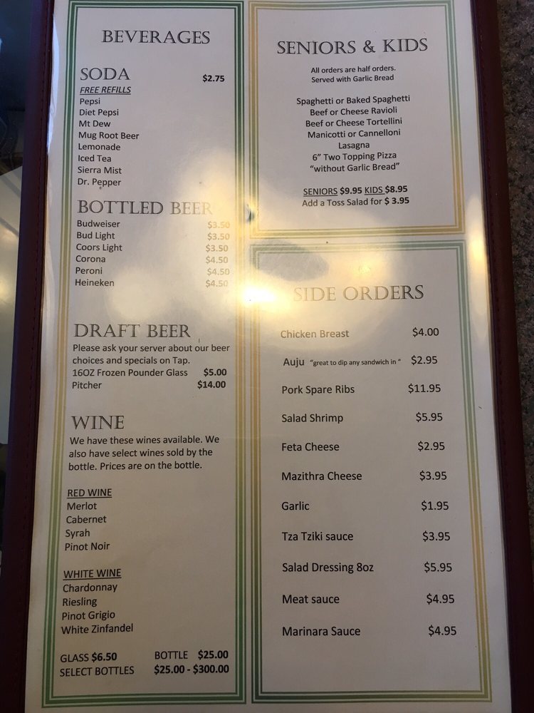 “ Great Greek style pizza and grinders. Garbage grinder is my favorite and HUGE. I've had a few experiences with less than fresh salad and bread but I'll always go back! ”